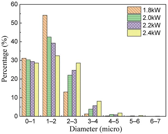 3 particles in the 0~2 μm range accounting for more than 85%. When the laser power was increased to 2.4 kW, Cr