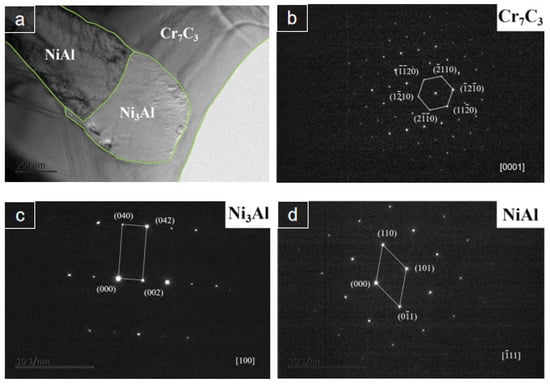 Figure 11d shows the electron diffraction pattern of the NiAl BCC structure.