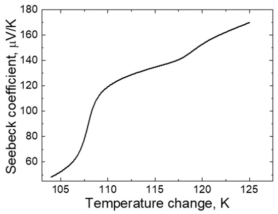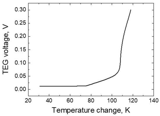 One of the most important parameters when evaluating the TEG suitability for application is the Seebeck coefficient. The dependence of this parameter on the temperature change is presented in Figure 11.