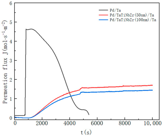 3.2. Hydrogen Permeation through Pd/TaTiNbZr/Ta and Pd/Ta