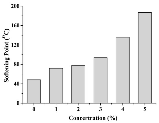 The softening point of emulsified asphalt influenced by the different WEP concentrations.