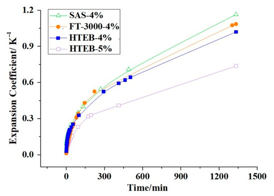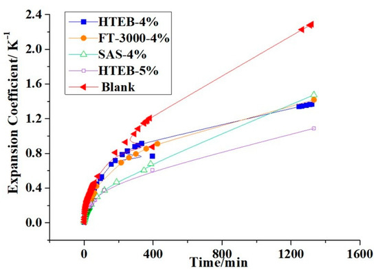 Effect of different additives and dosages on the expansion coefficient after aging.