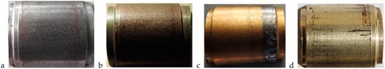 The macroscopic images of the coated shaft surfaces are shown in Figure 1.