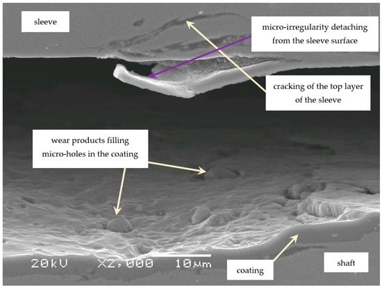 The above images were not observed in the case of coated shafts, as the hardnesses of their surfaces prevented the “weaker” wear products originating from shearing the micro-irregularities of the sleeve surface from grooving or scratching those surfaces.