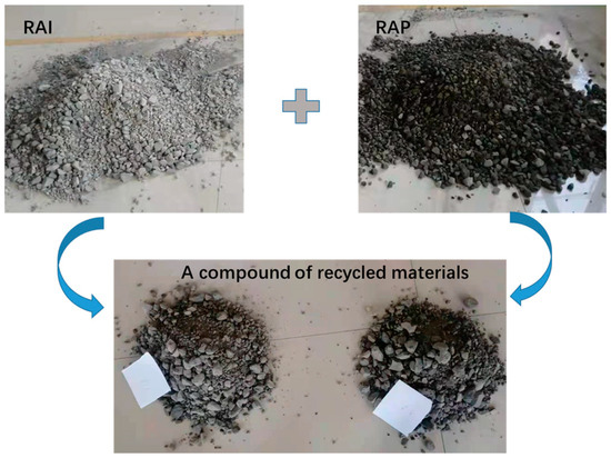 The reclaimed materials originated from the 110 National Highway in Inner Mongolia in China, which serves as a secondary road network. The prevailing asphalt surface layer measured 4 cm and was composed of AC-16 asphalt mixture, while the base layer consisted of a 20 cm layer of cement-stabilized crushed stone.