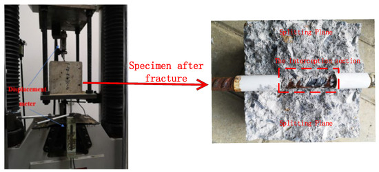 The failure modes of the central pull-out tests of the test groups under different chloride concentrations are listed in Table 2. When the chloride concentration was low, the failure mode of each test group was mainly a splitting failure. The frequency of a splitting failure decreases with an increase in the chloride solution concentration. Based on this phenomenon, it can be preliminarily inferred that chloride intrusion into concrete has an impact on the contact surface between reinforcement and concrete.