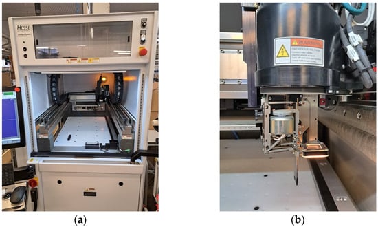 The machine used for bonding was a Hesse GmbH (Paderborn, Germany) BJ985 wire bonder as seen in Figure 2a equipped with RBK03 bondhead seen in Figure 2b [].