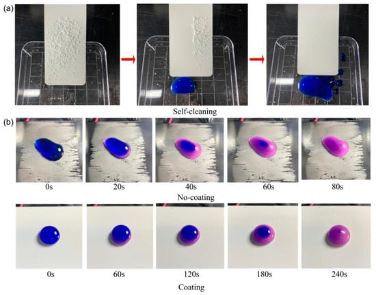 (a) Self-cleaning effect of coatings; (b) delayed icing effect of coatings.