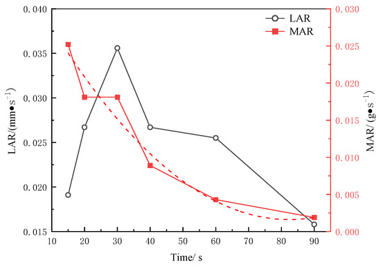 LAR and MAR of C/SiC-ZrC at different ablation times.
