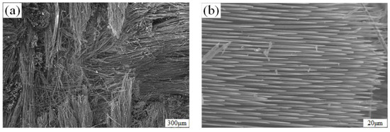 The SEM diagram after C/SiC fiber ablation: (a) ablation center; (b) ablation fibers.