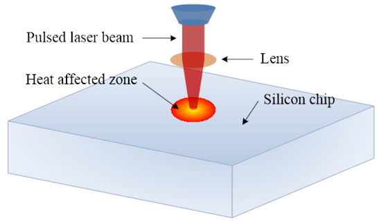The pulse laser heating arrangement for the three-dimensional model in Example 4.