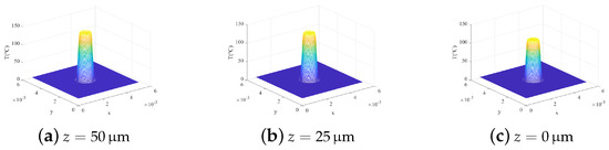 In general, the thermal wave equation Equation (5) must be solved for prescribed initial and boundary conditions. Here, the initial conditions are