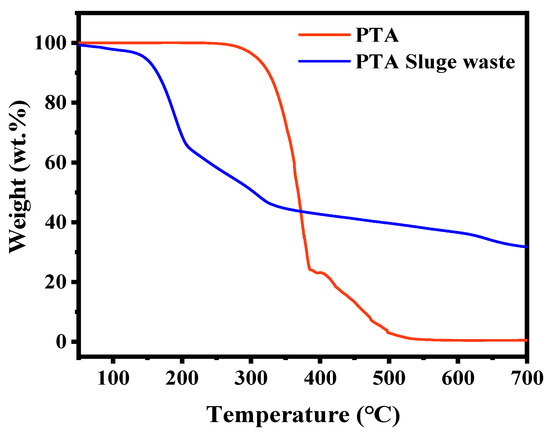 TG curves of PTA and PTA sludge wastes.