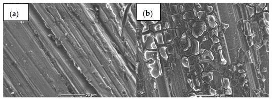 To support this assertion, the surface of the 304 stainless steel substrate was analyzed. Figure 9a shows the micrograph before depositing the CuO/SiO2 system.
