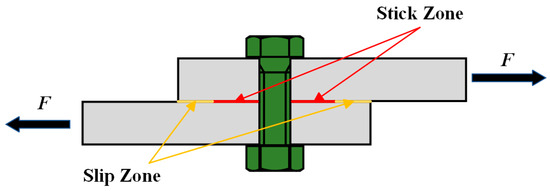 The general schematic diagram of the bolt joints structure of complex equipment is shown in Figure 1. Its connection interface is the bolded part of the figure. When the connection structure is subjected to the tensile load applied from both sides, the connection interface will have a stick zone and a slip zone. The mechanical friction microscopic contact model of its connection interface is shown in Figure 2. When the bolted interface is subjected to normal contact load, there will be normal damping characteristics and normal contact stiffness; when subjected to tangential load, tangential damping characteristics and tangential contact stiffness will be generated [3]. Jin Jing et al. [4] proposed a method of using local cooling and equivalent friction to jointly load the prestressing of a bolted joints structure, which simulated the distribution of stress in the pretensioned bolted joints structure. They provided a new method for the simulation of bolted joints structure.