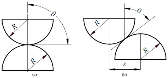 The interaction assumption assumes that the two asperities on the upper and lower surfaces are in contact with each other. Both asperities are deformed under normal load, which is categorized into peak-to-peak contact and side contact, as shown in Figure 7.