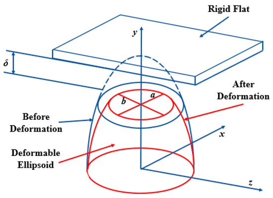 Figure 8. Schematic diagram of the contact between the rigid plane and the ellipsoid [10].