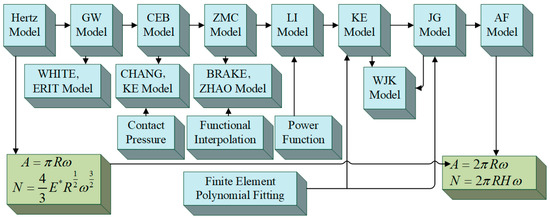 A single asperity is subjected to normal contact loads only, without considering friction between rough surfaces. After the emergence of Hertz contact theory, due to its simple and practical characteristics, many scholars have used the theory to simplify the calculation. Based on Hertz’s theory, the contact model has evolved from the initial consideration of only the elastic deformation stage of spherical asperities to the present more complex contact model that considers many surface morphology characteristics and material parameters. Material parameters mainly contain friction energy loss, asperity geometry and size, asperity interaction, substrate deformation, hardening of the material, surface adhesion, non-uniform distribution of load, scale effect of the mechanical behavior of the material, and horizontal distance of the surface asperity. This large number of considerations needs to take into account the continuous deformation process of the asperity, so the theoretical models for the cases of fully elastic, fully plastic, and elastoplastic deformation of the asperity are gradually improved.