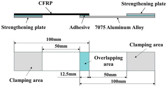 The aluminum alloy used for preparing single-lap joints was 7075-T6 high-strength aerospace aluminum alloy (Jingteng Metal, Shanghai, China) and its properties are shown in Table 3.