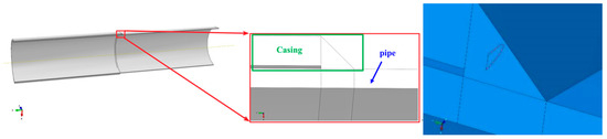 The pipe, weld, and casing locations have different material properties, mainly elastic parameters, including modulus of elasticity and Poisson’s ratio. The model material properties are shown in Table 1.