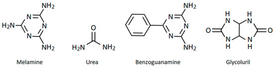 - Jones, F.N.; Chu, G.; Samaraweera, U. Recent studies of self-condensation and co-condensation of melamine-formaldehyde resins; cure at low temperatures. Prog. Org. Coat. 1994, 24, 189–208. [Google Scholar] [CrossRef]