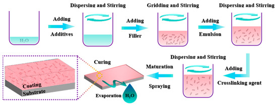 During the use of aquaculture network facilities, communities derived from the attachment of contaminated organisms to ship hulls make it easy for bacteria and parasites to breed, which will adversely affect the production of aquatic products []. A lack of resistance to biological attachment is one of the serious challenges faced by oceanfront equipment. Biological adhesion not only increases the maintenance cost of equipment, but also leads to equipment failure and corrosion failure. Coatings are among the most widely used methods for marine equipment maintenance. Traditional solvent-based antifouling coatings use organic solvents as dispersing media to prevent microbial attachment through the release of sterilizers in the coating system. However, the use of organic solvents consumes a lot of fossil energy, and organic solvents are harmful to the health of construction workers because of their volatility. In addition, the release of sterilizers causes pollution to the marine environment, and is more likely to accumulate in marine organisms, threatening the safety of humans who eat marine organisms. Sun [] grafted low-toxic structural compounds as sterilization factors onto the side chain of acrylic resin to control the hydrolysis of sterilization factors to achieve self-polishing of the coating. Compared with heavy metal copper sterilization factors they are green, but they are still toxic and still pose a threat to marine microorganisms. In order to solve this industry dilemma, researchers continue to innovate and devote themselves to the development of new materials and new technologies to realize new coatings that are environmentally friendly and anti-fouling.