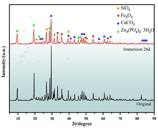 Phase analysis of composite coating G10 before and after 28 d seawater immersion.