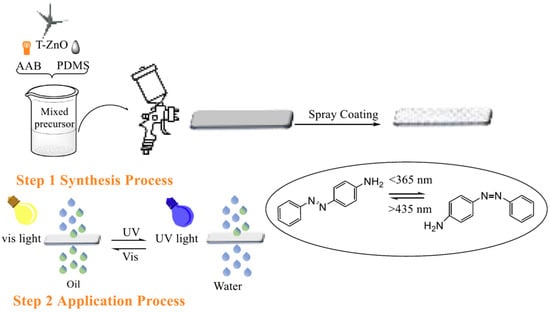 - Yang, C.; Wang, J.; Li, J.; Zhang, H.; Shi, C.; Guo, Z.; Bai, B. Facile fabrication of durable mesh with reversible photo-responsive wettability for intelligent oil/water separation. Prog. Org. Coat. 2021, 160, 106520. [Google Scholar] [CrossRef]