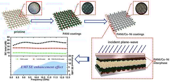- Zhao, H.; Hou, L.; Bi, S.; Lu, Y. Enhanced X-Band Electromagnetic-Interference Shielding Performance of Layer-Structured Fabric-Supported Polyaniline/Cobalt–Nickel Coatings. ACS Appl. Mater. Interfaces 2017, 9, 33059–33070. [Google Scholar] [CrossRef] [PubMed]