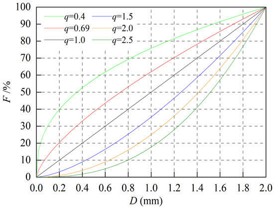q—distribution modulus, indicating the void ratio between particles, the larger the q, the larger the void ratio; the smaller the q, the smaller the voidage.
