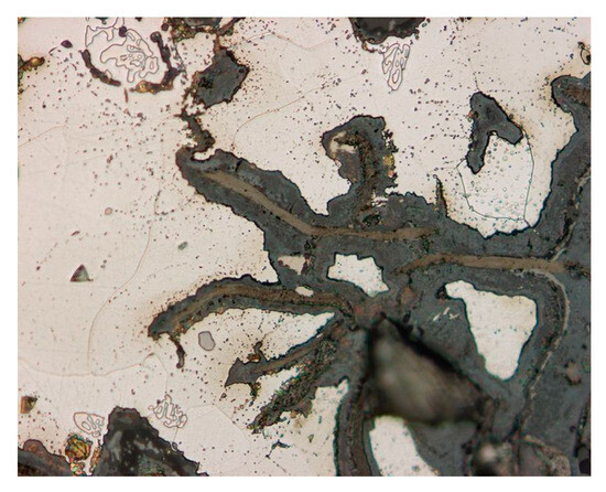 Figure 5. Microscopic image of selective corrosion on cast iron (magnification 500×) [3].