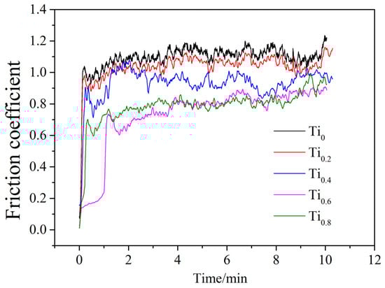 Friction coefficient curve of CoCrFeNiMnTix HEA cladding coating.