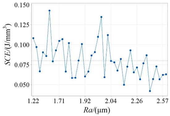 Rz is the maximum height of the contour in the roughness value. It is in the benchmark length of the contour curve, the highest point, and the lowest point of the sum of the distance. When cutting brittle materials or plastic materials at high speeds, the heights of the two are roughly equal. That is . Combining Equation (19) yields the flank face friction-specific energy Equation (20).