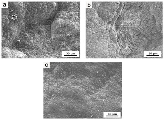 EPMA images of Ir coating: (a) surface morphology of blisters in composite coatings; (b) surface morphology of cracks in composite coatings; (c) surface morphology of flat and intact composite coating.