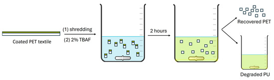 - De Smet, D.; Verjans, J.; Vanneste, M. Selective Solvolysis of Bio-Based PU-Coated Fabric. Polymers 2022, 14, 5452. [Google Scholar] [CrossRef] [PubMed]
