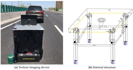 The developed image acquisition device for the texture structure of the asphalt pavement is shown in Figure 4 [,].