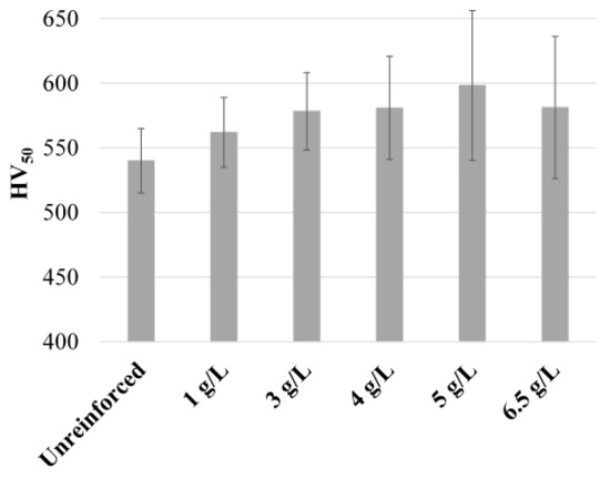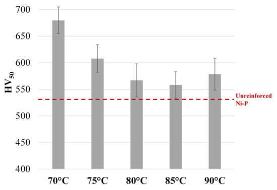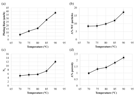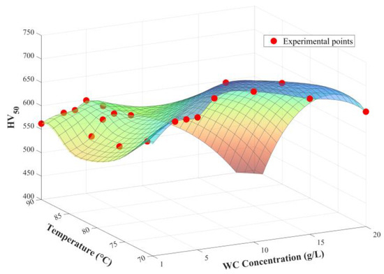 3.1. Effect of Temperature and WC Concentration on Microhardness