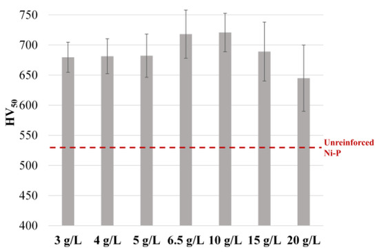 - Alirezaei, S.; Monirvaghefi, S.M.; Salehi, M.; Saatchi, A. Effect of Alumina Content on Surface Morphology and Hardness of Ni-P-Al2O3(α) Electroless Composite Coatings. Surf. Coat. Technol. 2004, 184, 170–175. [Google Scholar] [CrossRef]