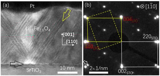 - Liu, K.; Zhang, R.; Lu, L.; Mi, S.; Liu, M.; Wang, H.; Wu, S.; Jia, C. Atomic-scale Investigation of Spinel LiFe5O8 Thin Films on SrTiO3 (001) Substrates. J. Mater. Sci. Technol. 2020, 40, 31–38. [Google Scholar] [CrossRef]