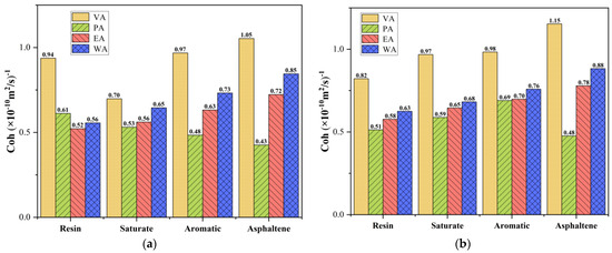 The results of Coh calculations for each component of asphalt at different interfaces are shown in Figure 13.