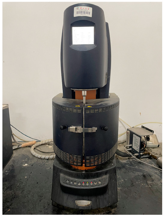 We weighed the limestone mineral powder according to the powder rubber ratio of 1:1 and placed the weighed mineral powder and asphalt into the oven, heated at 150 °C for 2 h. Then, we added the mineral powder to the asphalt in batches, maintained the temperature at 150 °C, and sheared it with a high-speed shearer at a rotational speed of 3000 rad/min for 35 min to make asphalt mastic.