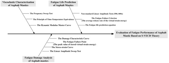 The Ishikawa cause-and-effect diagram is the evaluation of the fatigue performance of asphalt mastic based on the S-VECD theory and is shown in Figure 10.