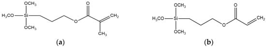 Structures of (a) 3-methacryloxypropyltrimethoxysilane (MPS) and (b) 3-acryloyloxypropyltrimethoxysilane (ACPS).