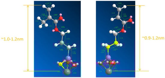 Table 1 summarizes the thicknesses of the treated silica substrates on M5, M22, A5 and A22. The stimulated lengths (Figure 2) of an MPS and an ACPS molecule are both ~1.0 nm at their lowest energy states.