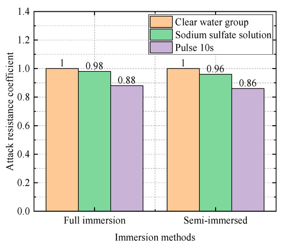 Attack resistance coefficient of different immersion methods with water–cement ratio of 0.5.