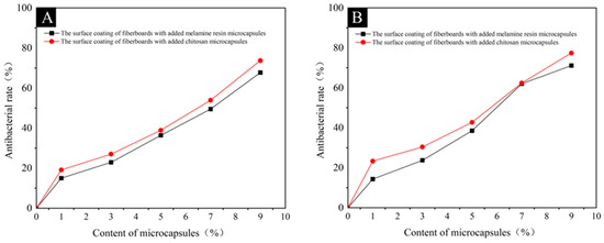 Effect of Two Types of Pomelo Peel Flavonoid Microcapsules on the Performance of Water-Based Coatings on the Surface of Fiberboard
