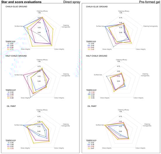 | Score Rating | Cleaning Efficacy | Cleaning Homogeneity | Pigment Swelling | Selectivity (Pigment Loss) |