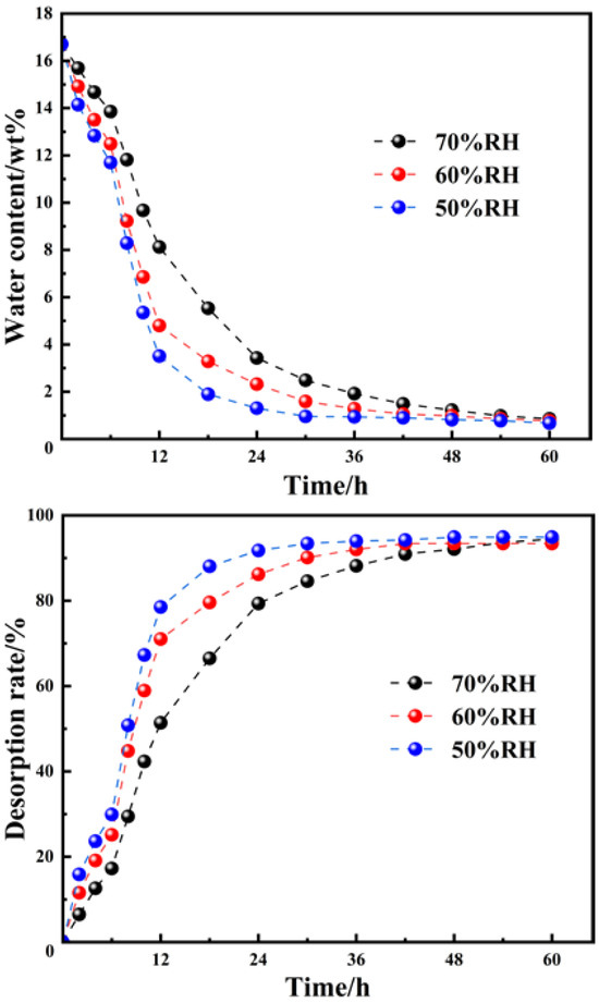 3.2.2. The Moisture Release Behavior of High-Performance Lightweight Aggregates under Varying Temperature and Humidity Conditions