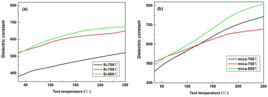 Dielectric properties of PZT films deposited on the different substrates with different annealing temperatures: (a) Si substrates; (b) mica substrates.