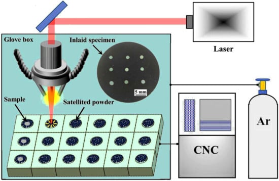 Schematic of the laser micro-alloying process and the inlaid specimen (adapted from [24]).